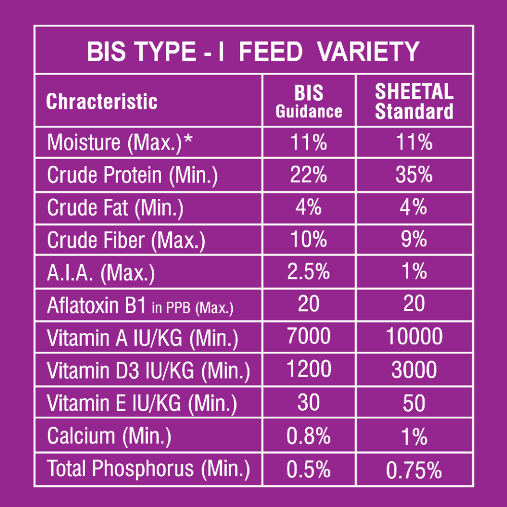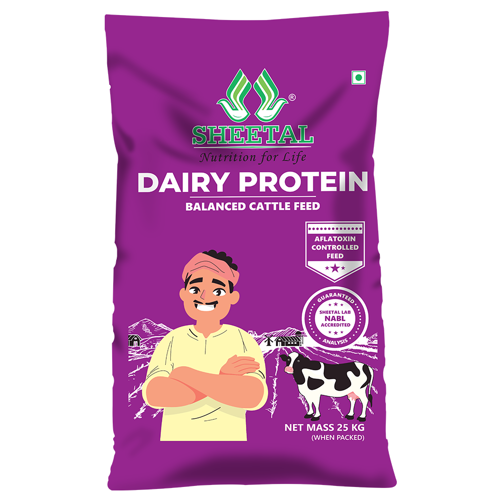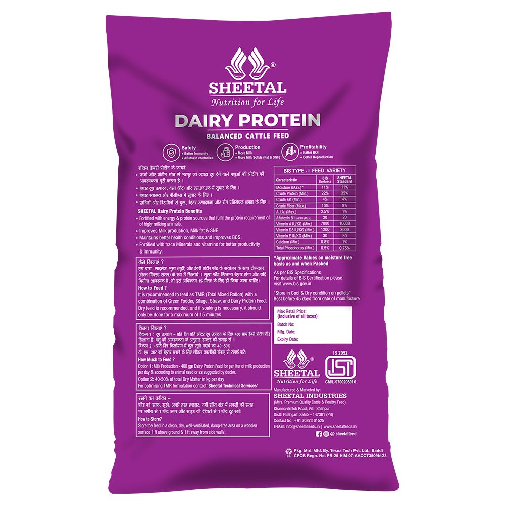 • Dairy Protein 1.5 to 2.5 kilograms per day mixed with green/dry fodder.