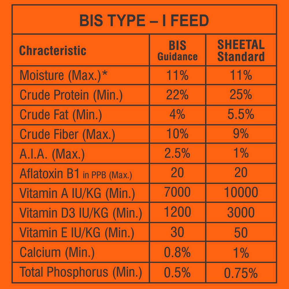 - Buffaloes: 1 kg feed per 2 liters of milk.